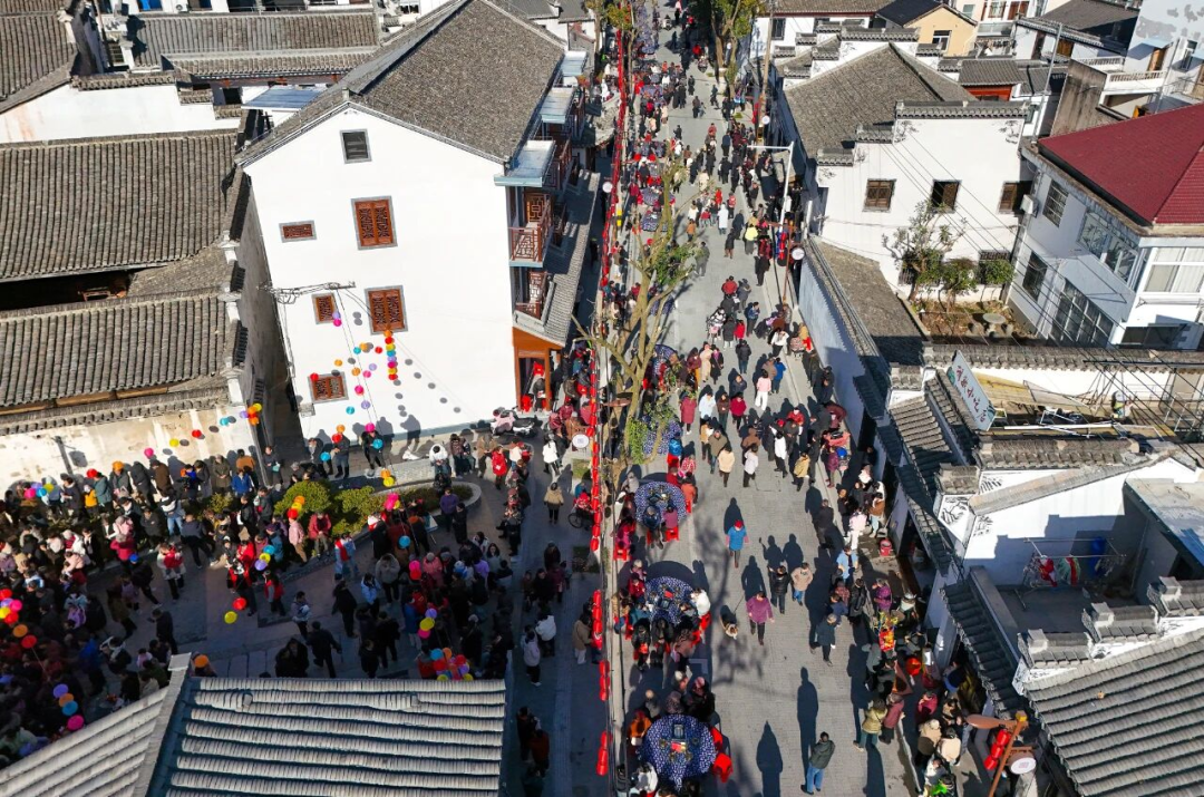 新春的华阳东大街张灯结彩,红绸映着青瓦,年味从街头漫到巷尾。市集里燕笋干、山核桃、麻糖等绩溪好物琳琅满目,挑上几样新春伴手礼,把徽州年味带回家。