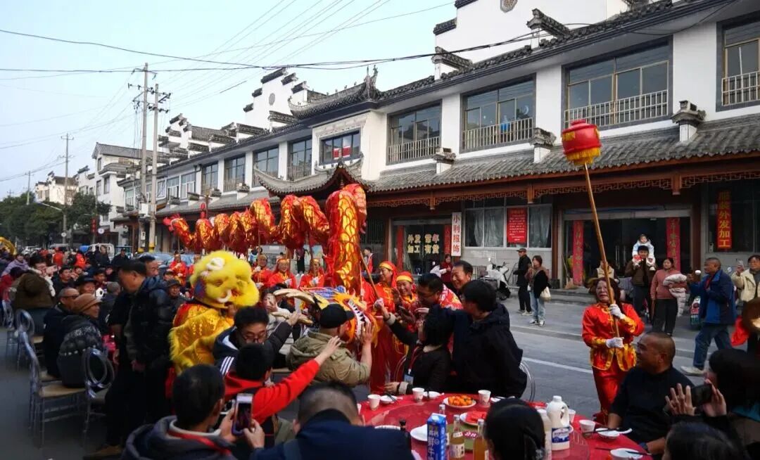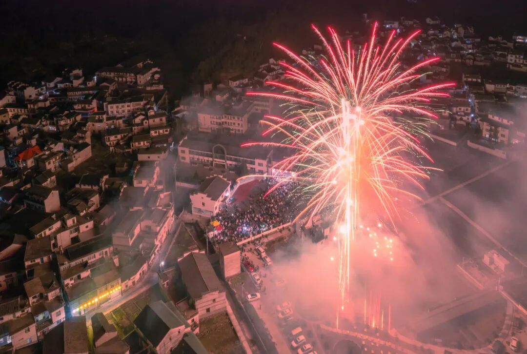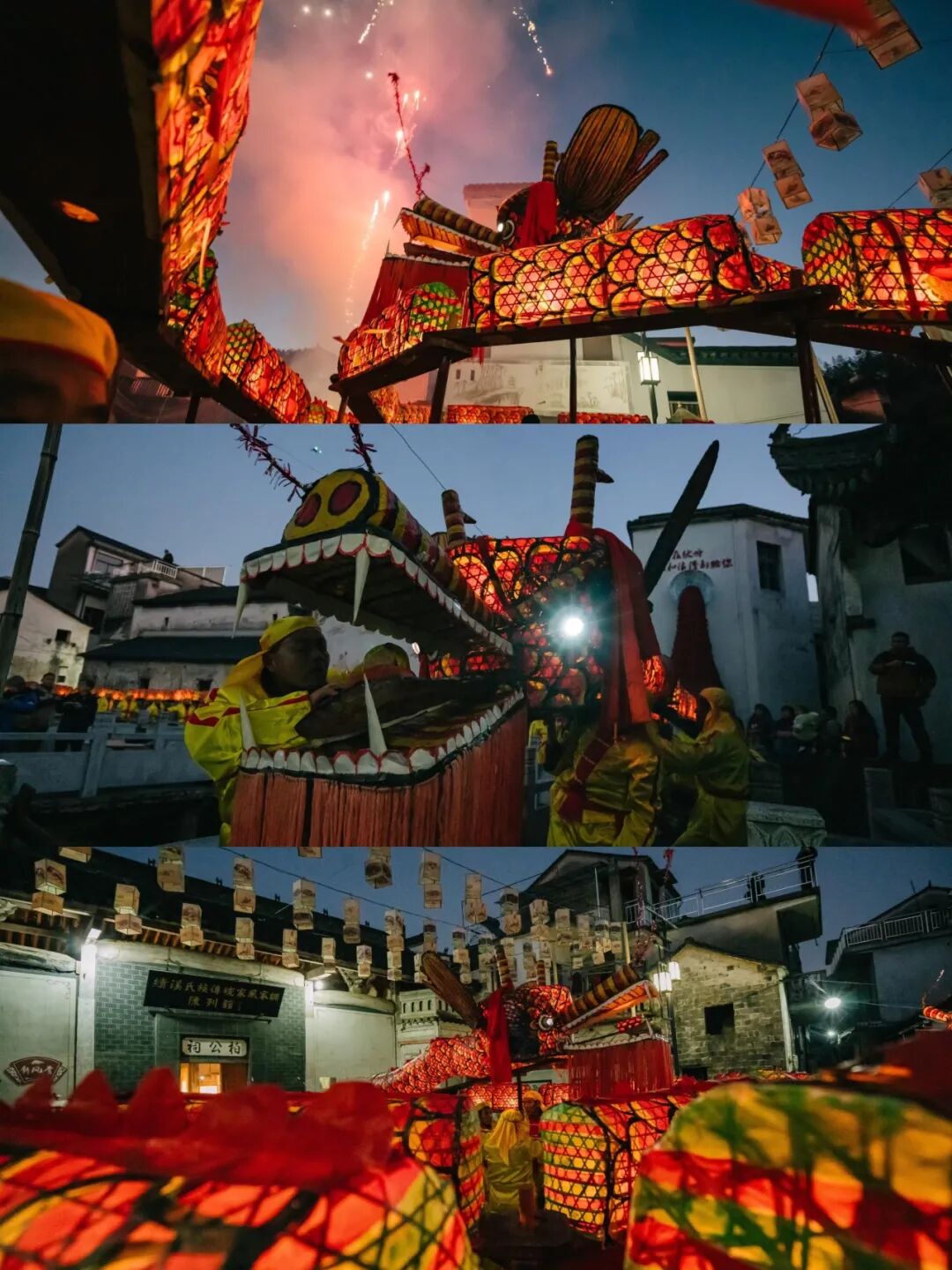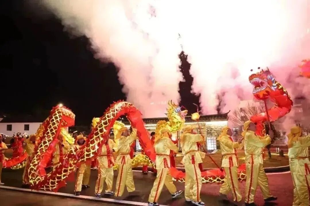 伏岭镇素有 “中国民间文化艺术之乡” 美誉,春节这里是非遗的海洋,藏着最地道的徽州年俗。戏台上,演绎经典,色彩斑斓的戏服、传神的身段,让你近距离感受徽剧——这一京剧前身的独特魅力。夜幕降临,板龙舞动点亮古村,非遗传承人手工制作的板龙点上红烛,龙身蜿蜒穿梭街巷,烟花璀璨、鼓乐齐鸣,家家户户围赏板龙,年味在欢声笑语中达到顶峰。