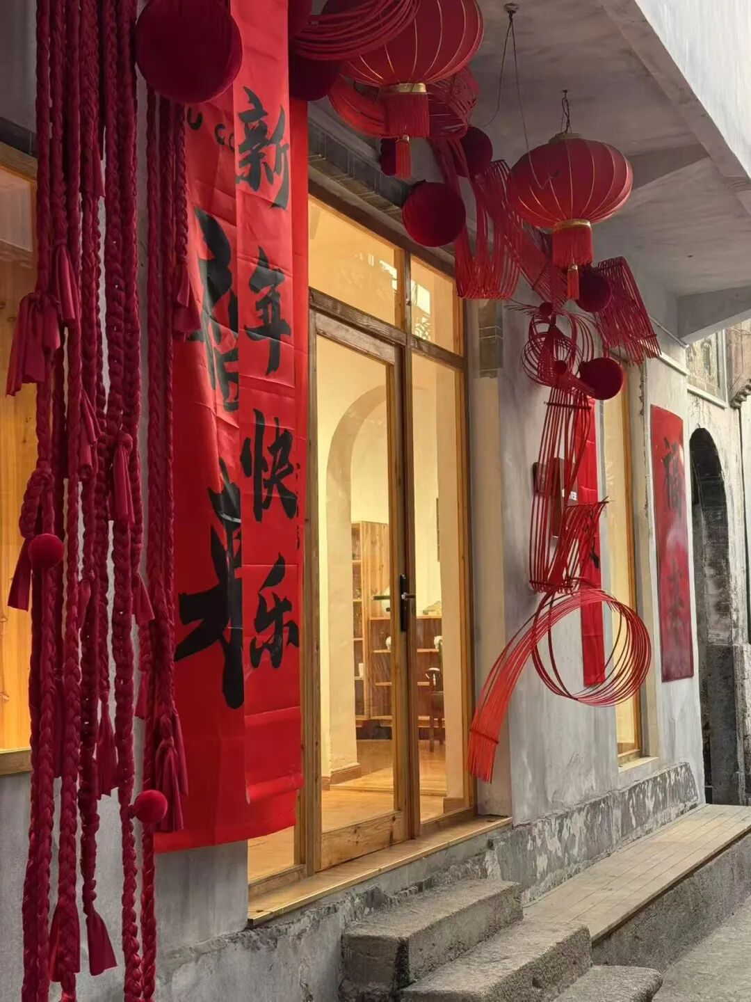 毗邻的绩溪文庙古意盎然,红墙黛瓦间挂起红灯笼,新春期间可来此祈福,许下新年顺遂的美好心愿。
