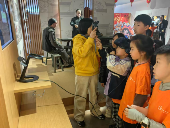 随后前往绩溪县数字化非遗展示中心,这里打破传统非遗展示的边界,以数字科技赋能徽文化体验,孩子可以通过 VR、AR 技术沉浸式体验徽剧表演、秋千抬阁、徽墨制作等非遗项目,在趣味互动中了解绩溪非遗的魅力;还有亲子数字绘画、非遗知识问答等趣味活动,让孩子在玩中学,感受徽文化的独特魅力。