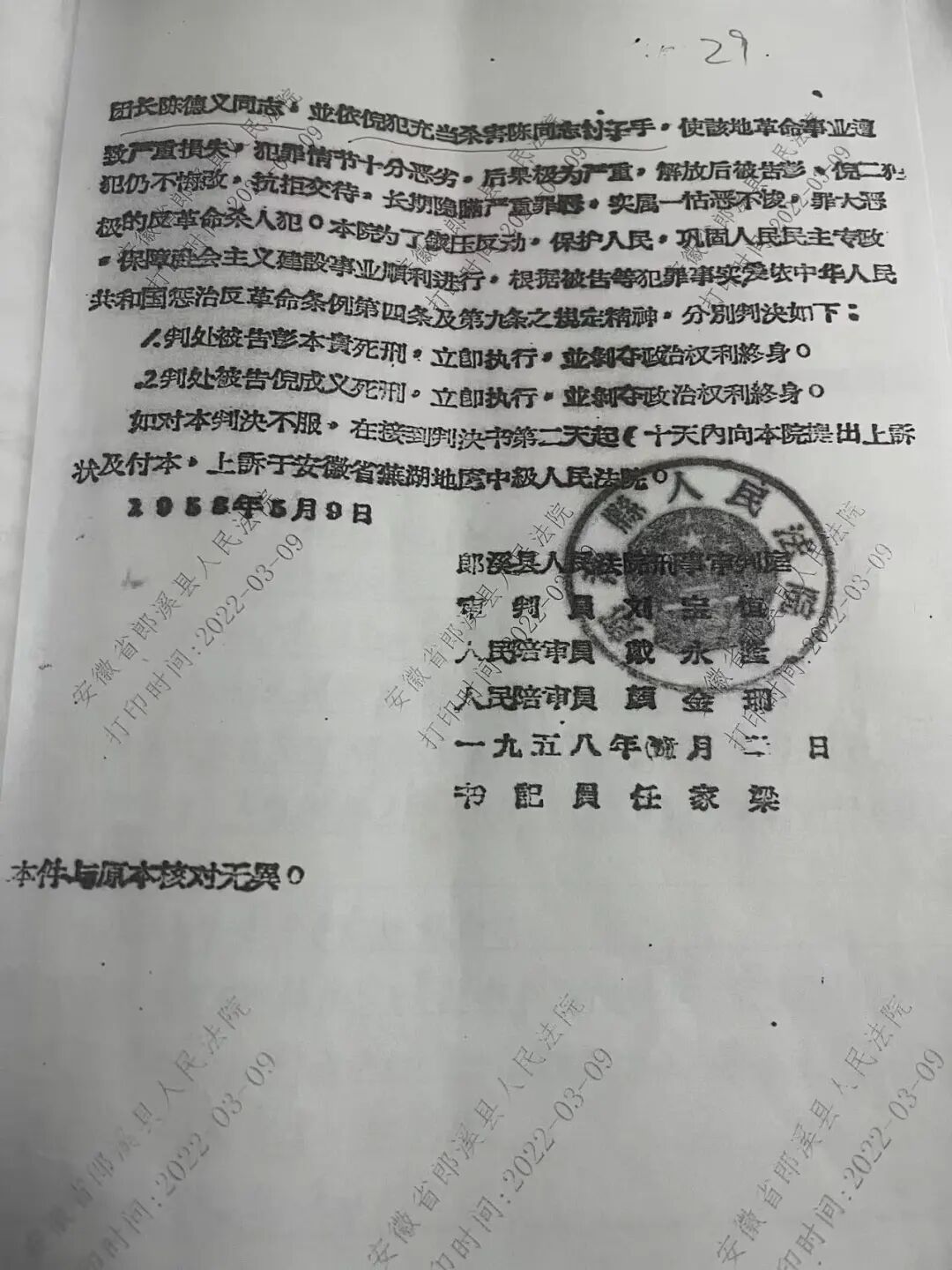 1958年的法院裁决书