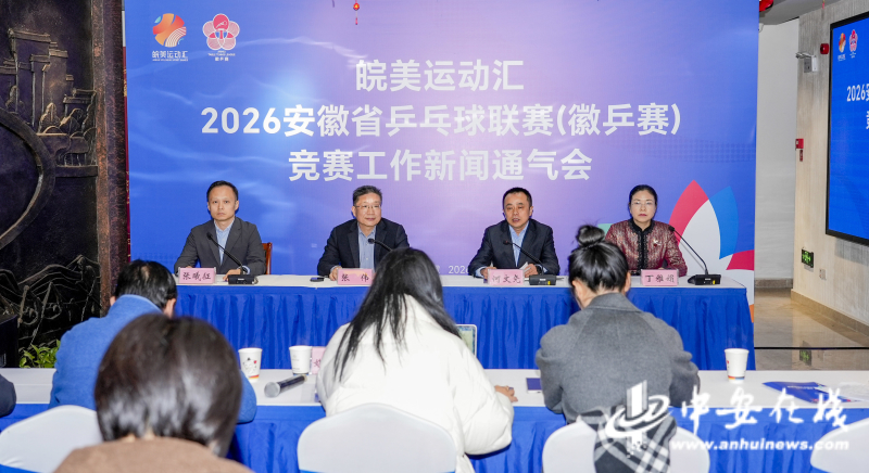 中安在线、中安新闻客户端讯 2月26日,记者从2026安徽省乒乓球联赛(徽乒赛)新闻通气会上获悉,作为“皖美运动汇”2026安徽省全民健身赛事季的核心赛事之一,“全民乒乓 我是球王”2026安徽省乒乓球联赛(徽乒赛)将于3月7日隆重启幕。本次联赛覆盖全省104个县(市、区),赛期从3月持续至9月,创新走进大型商超、商业街区等公共商业空间,让市民在购物休闲中即可邂逅精彩赛事,实现“全民参与、全域联动、全链融合”的赛事新场景。