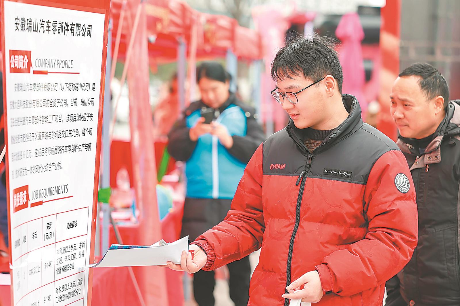 2月25日,求职者在合肥市暨蜀山区2026年春风行动就业援助季专场招聘会现场浏览岗位信息。本次招聘会提供超3000个就业岗位,覆盖智能制造、现代服务等多个行业领域。记者 范柏文 摄