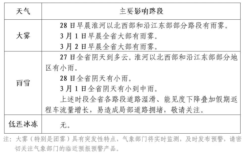 未来三天交通主要影响天气