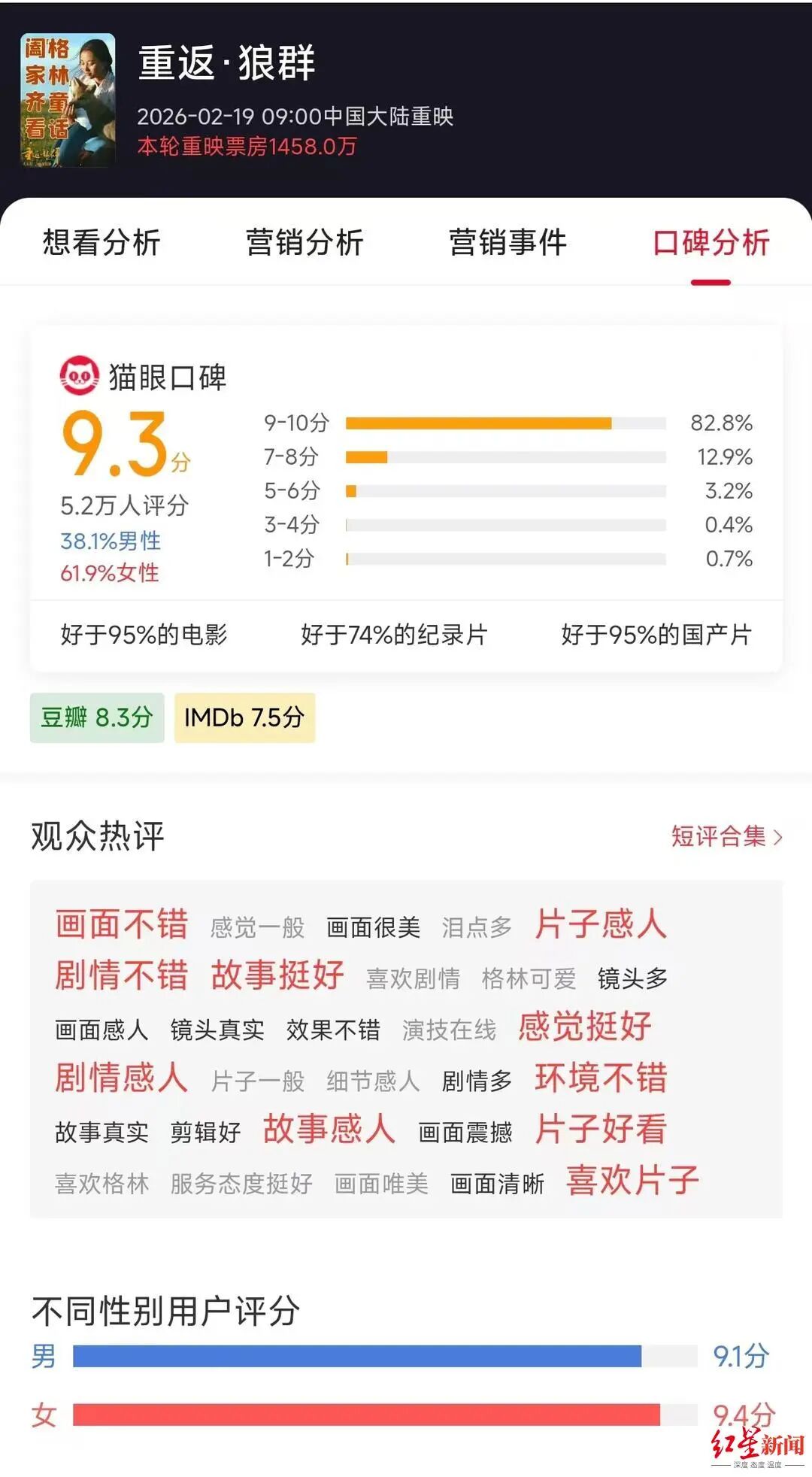 ▲《重返狼群》受到观众好评