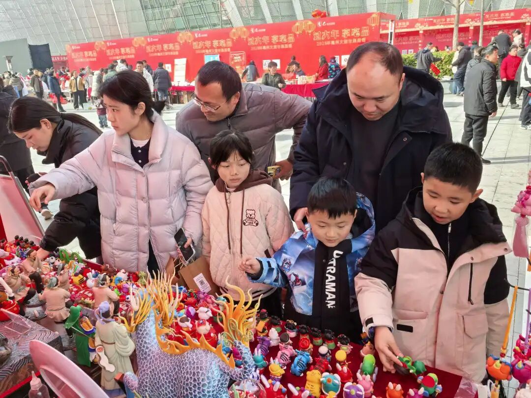 在特色文创展销专区,民间文艺与现代审美碰撞出激烈火花。面塑艺人指尖翻飞,须臾间,憨态可掬的十二生肖、五禽形象便跃然掌上;剪纸艺人巧剪生花,将新春祝福融入到吉祥纹样中;中药饰品展位前更是人头攒动,各种中草药经多道工序加工,化为兼具安神功效与时尚气质的手串、耳坠、挂坠等饰品。这些可观赏、可把玩、可实用的民间文艺作品,既保留了原汁原味的技艺精髓,又契合了当代生活美学,引得消费者纷纷驻足选购。
