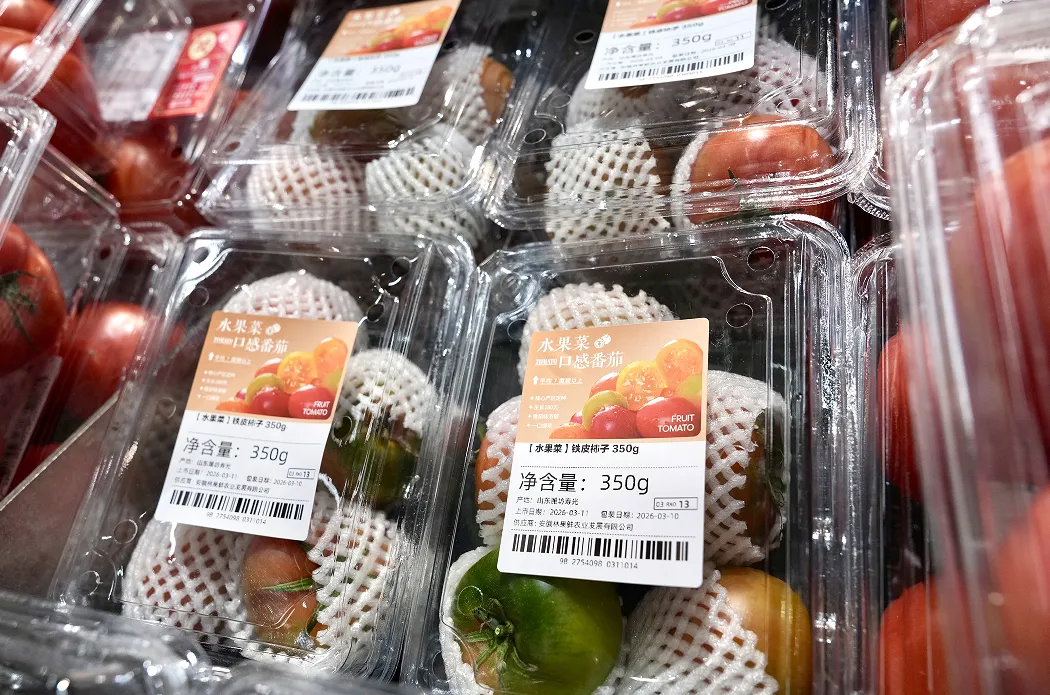 “这个草莓番茄看着真新鲜,颜色红绿相间,像草莓一样,买回去给孩子尝尝。”正在选购的市民李女士笑着说。该门店店长姚明东介绍,草莓番茄口感脆甜,既可当水果生食,也适合凉拌或清炒,上市以来销量持续走高。