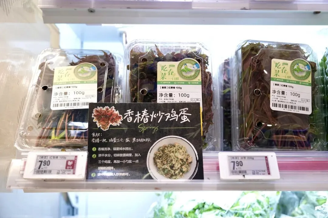 “今年集中上市的春菜品种比往年更多,目前共有25种在售。板蓝根青菜、芦笋、芦蒿、香椿卖得最好,销售额同比增长约20%。”姚明东表示。