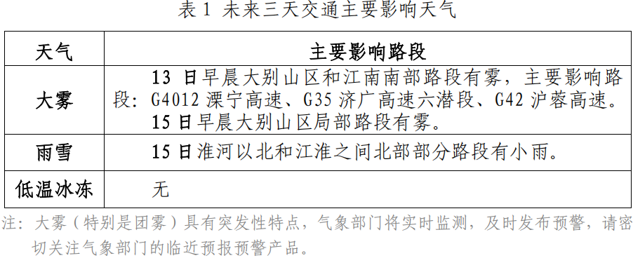 未来三天交通主要影响天气