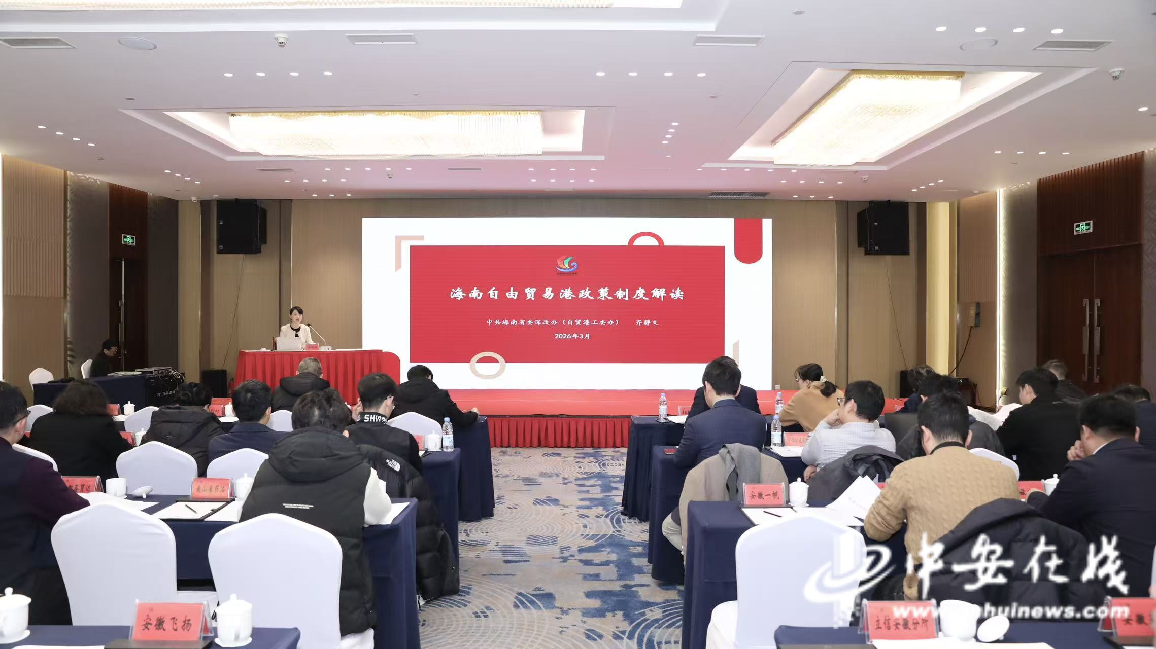 中安在线、中安新闻客户端讯 3月12日,合肥市天鹅湖大酒店,由安徽省商务厅(省自贸办)主办的安徽企业海南自贸港政策专题培训正式开班。来自全省约150名有意拓展海南业务及已有对琼合作项目的企业负责人参加培训。本次培训旨在海南自贸港全岛封关运作的关键阶段,精准服务国家开放战略,帮助安徽企业深入理解封关运作政策框架,把握制度型开放新机遇,搭建皖琼经贸合作桥梁,推动自贸港政策红利在皖企落地转化。