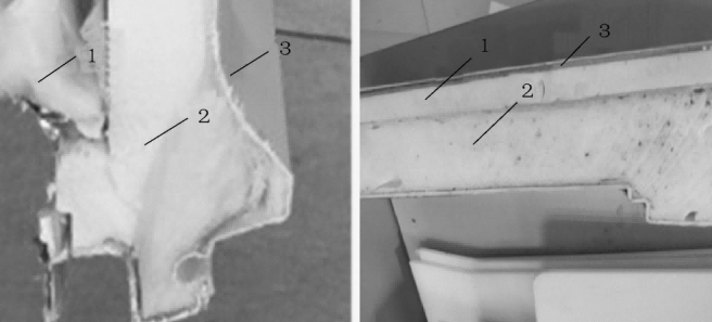 冰箱门体 1—真空绝热板;2—门体发泡层;3—门体外壳 图源:参考文献[3]