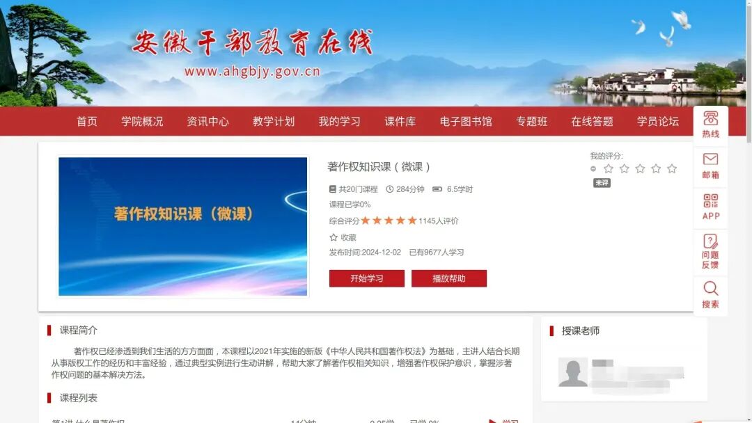 2024年12月,上线著作权法网络课程