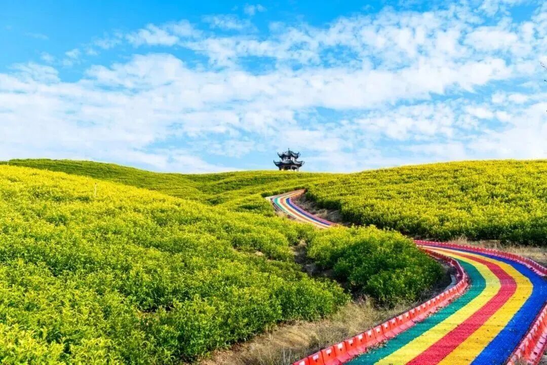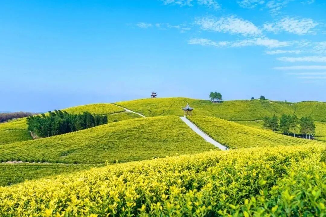 走进大佛山养心谷,千亩黄金茶园便毫无保留地在眼前铺展,漫山遍野的黄绿色茶芽在阳光下闪闪发亮~这时候最适合带上竹篓当半日茶农,把春意收入囊中!