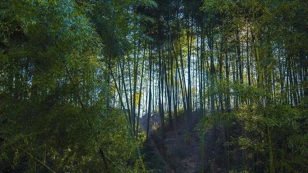 沿着石阶缓缓而上,竹林青翠欲滴,新绿的树叶在阳光下透亮。这时候吹来的风不冷不热,超舒服~