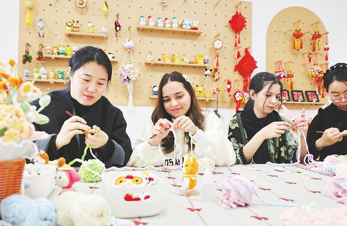 昨天,新站高新区瑶海社区举办“外国留学生进社区 巧手匠心学编织”活动,来自安徽中医药大学人文与国际教育交流学院留学生们跟着专业人士学习钩针编织,感受民间传统手工艺的魅力。