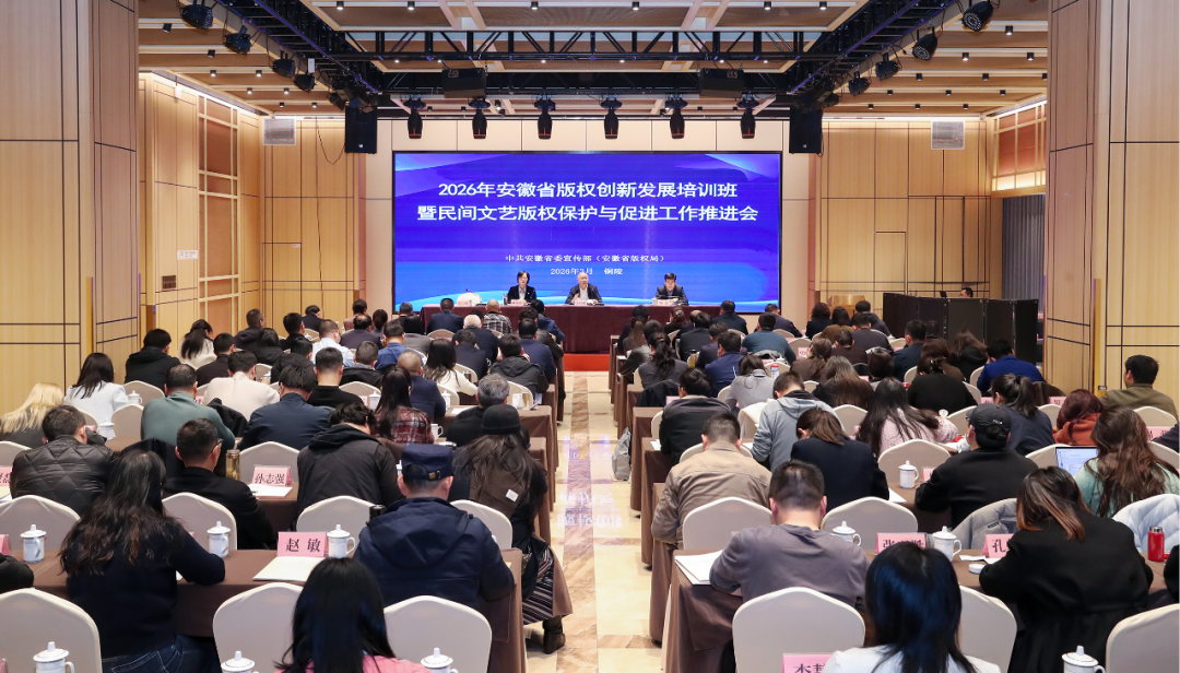 3月25日至27日,2026年安徽省版权创新发展培训班暨民间文艺版权保护与促进工作推进会在铜陵举行。各市委宣传部、部分县(市、区)党委宣传部负责人,省直宣传文化单位相关负责人,部分版权创新发展骨干企事业单位负责人等110余人参加。省委宣传部副部长,省新闻出版局、省版权局局长方晓利出席并讲话,铜陵市委常委、宣传部部长陈鑫出席并致辞。