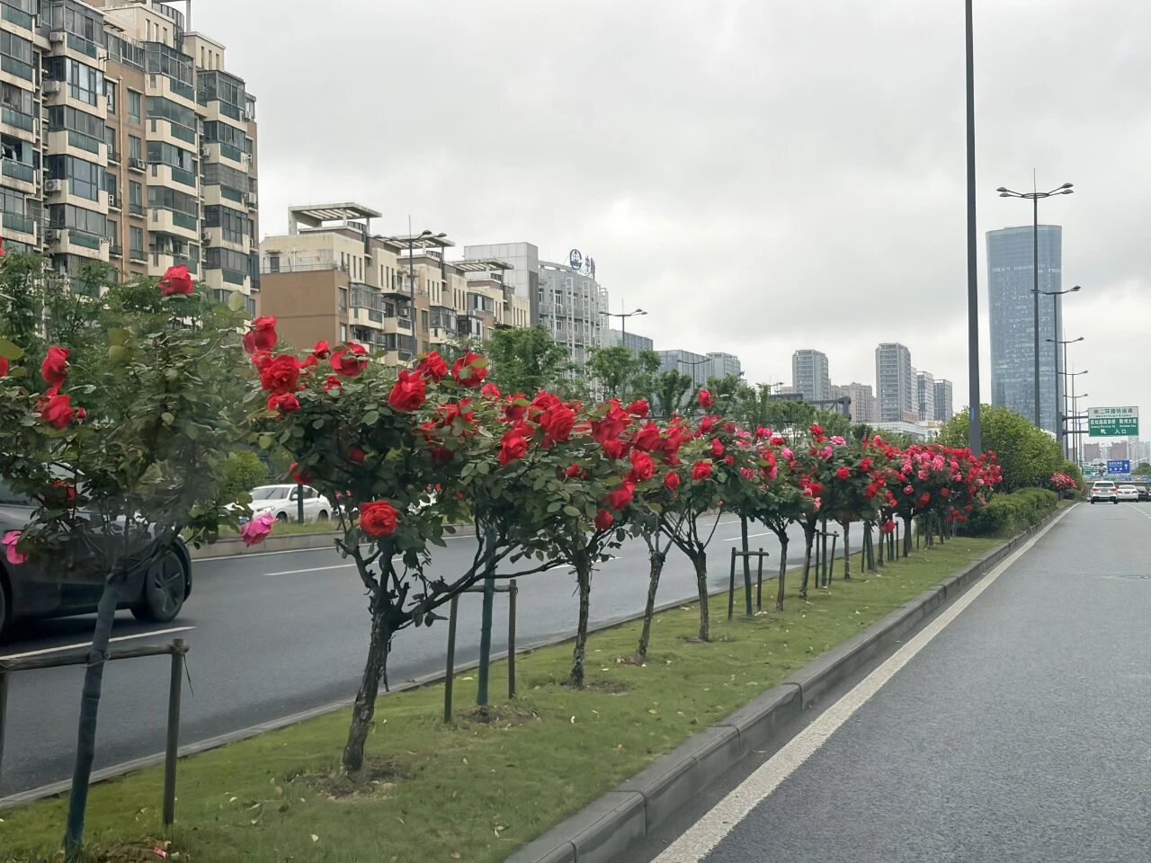 “前几天路过还只是零星几朵,没想到短短一周,就开得这么热闹!”正在路边驻足观赏的市民王女士笑着说,她每天上下班都会经过这里,如今沿途的月季盛放,让原本匆忙的通勤路变得格外温柔。“早上看到这一片繁花,一整天的心情都变好了,太治愈了。”
