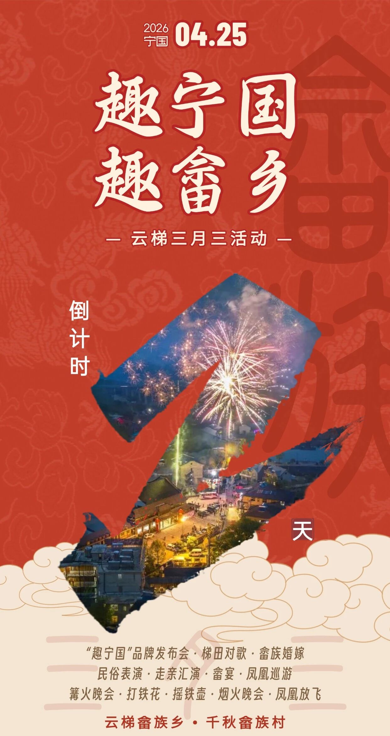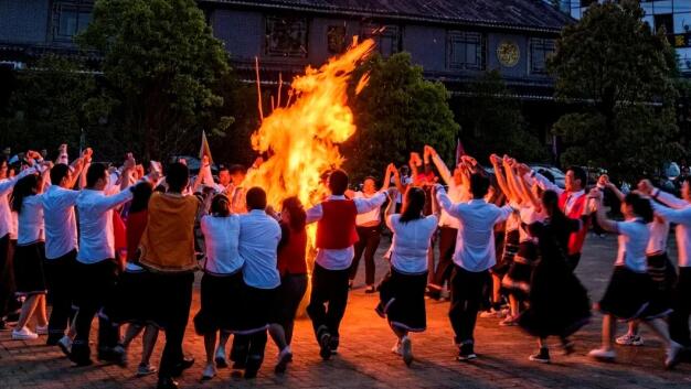 篝火狂欢:畲族歌舞互动,全民联欢。