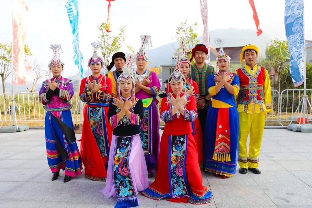 长三角畲族乡文艺队伍齐聚一堂,歌舞联欢,共促民族团结。