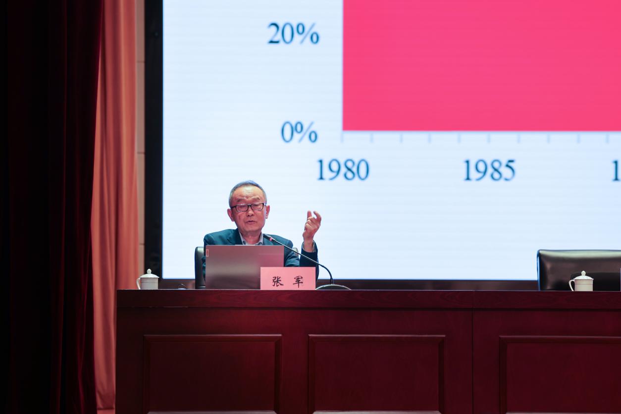 报告会上,张军教授结合其著作《当代中国经济讲义》,运用大量的数据图表、生动案例,深入解读了当前宏观经济形势及长期发展趋势,分析了当前和今后我国经济发展的机遇和挑战,解答了诸多关乎中国经济高质量发展的核心问题。