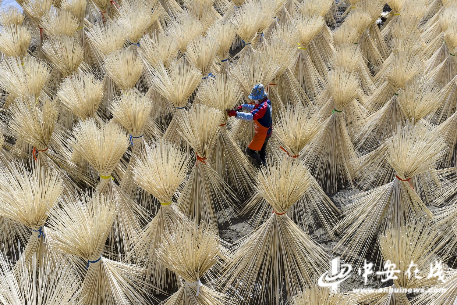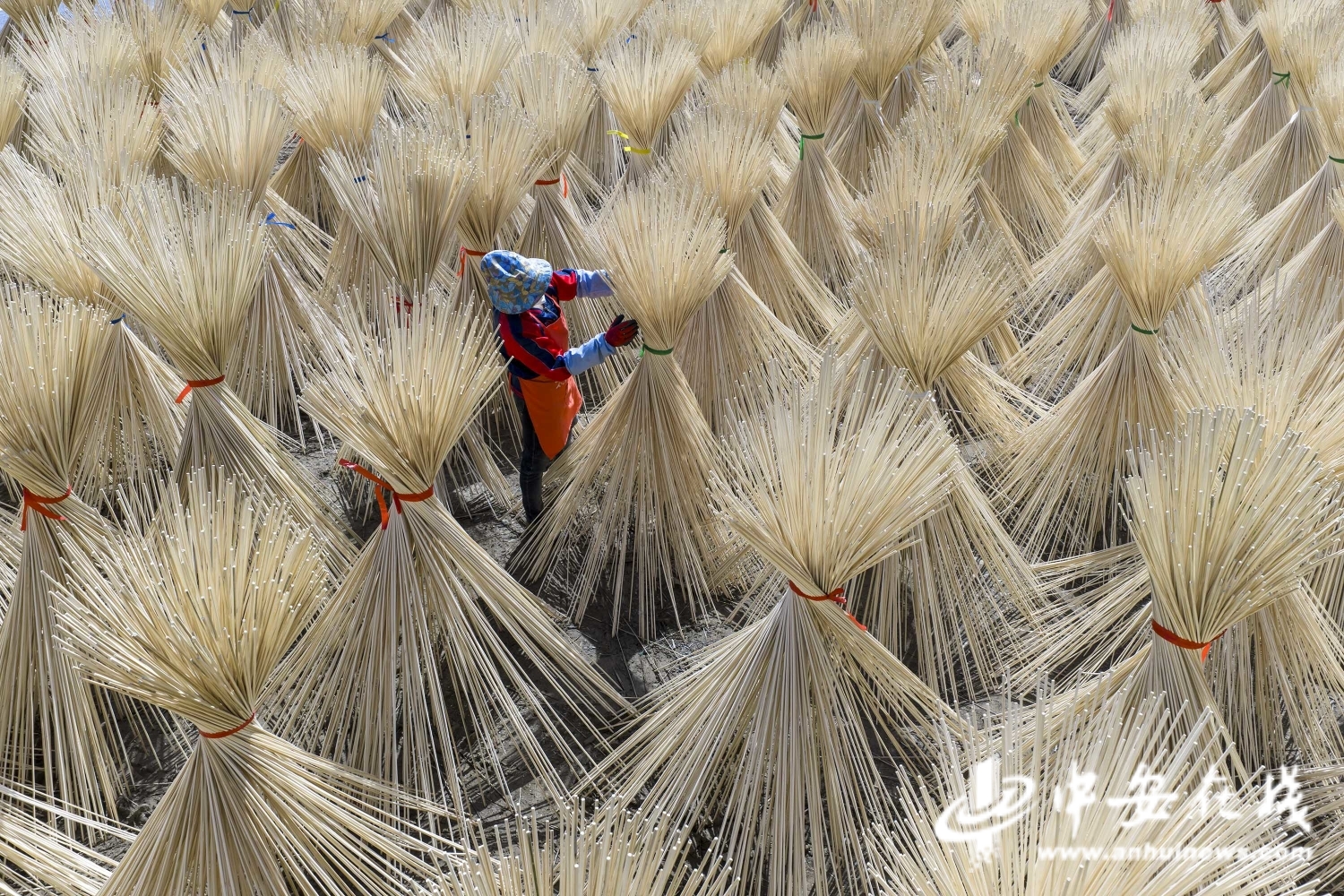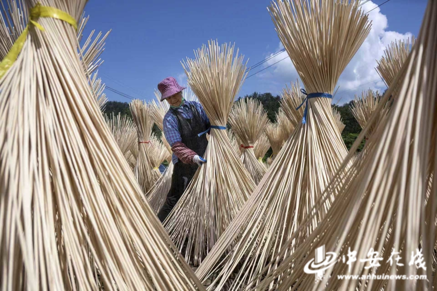 中安在线、中安新闻客户端讯 4月25日,安徽省宣城市旌德县庙首镇祥云村一家竹业加工厂,工人在晾晒竹制半成品。