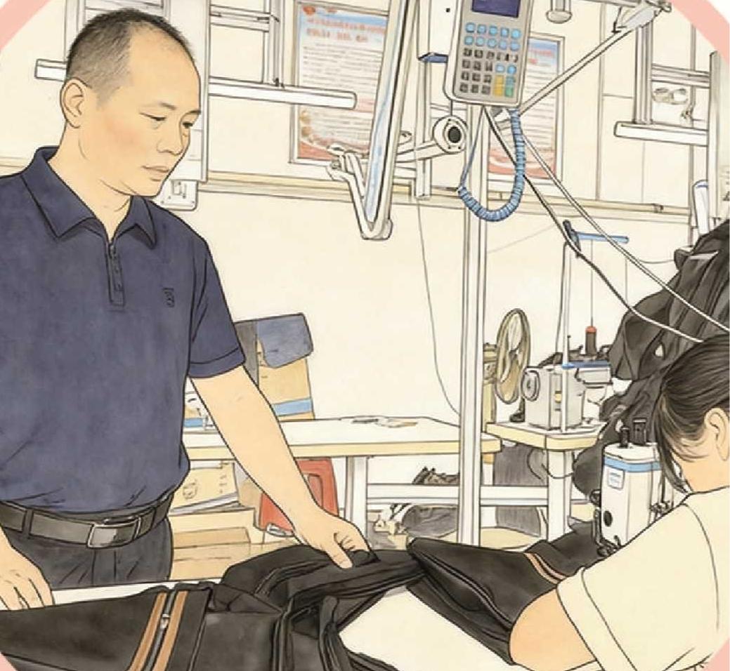 但红亮箱包不一样。这里实行计件工资,不打卡、不记迟到。员工早上送完孩子再来上班,下午到点接孩子就走,中间还能回家做饭、照看老人。