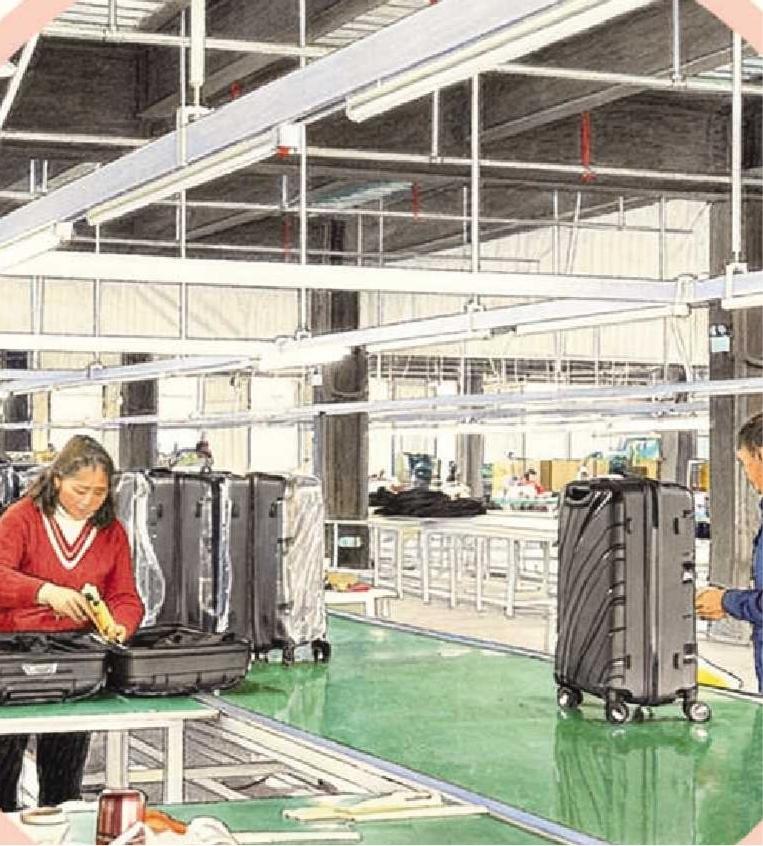 厂里很多员工一干就是十几年。郑继影属于最早一批进厂的,月工资从2000多元一路涨到了5000多元。其爱人也放弃了外出务工,和她一起进了箱包厂。两人月工资加起来有一万多元。