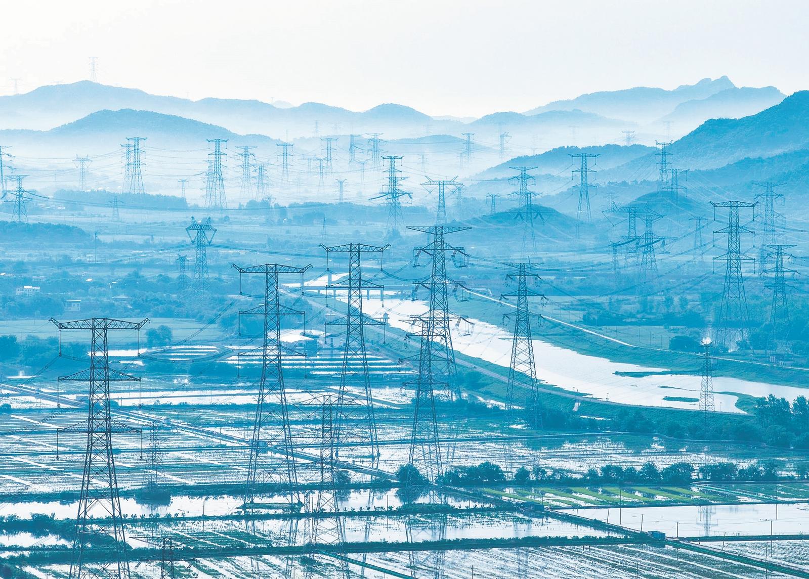 4月27日,芜湖市繁昌区孙村镇境内“西电东送”特高压输电工程与晨雾、山峦、乡村田野等相映成景。吉泉±1100千伏等多条特高压输电工程通过繁昌区孙村镇境内的特高压走廊,将中西部丰富电能高效输送至长三角等地区。通讯员 鲁君元 摄