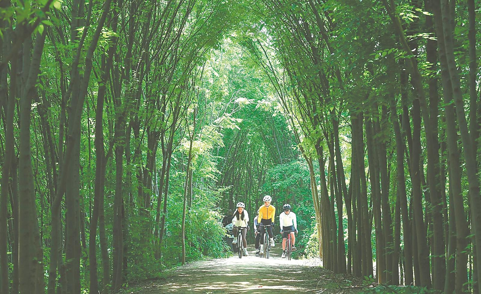 4月25日,骑行爱好者在阜阳市颍东区袁寨镇江店社区一片榉树林内骑行。近年来,阜阳市坚持生态优先、绿色发展,持续改善生态环境和人居环境。特约摄影 王彪 摄
