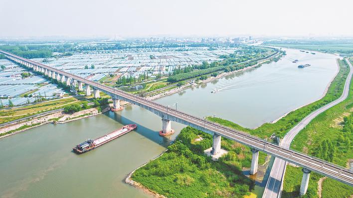 4月25日,在南淝河上,一艘艘货船满载而行,一片繁忙景象。通讯员 马二虎 摄