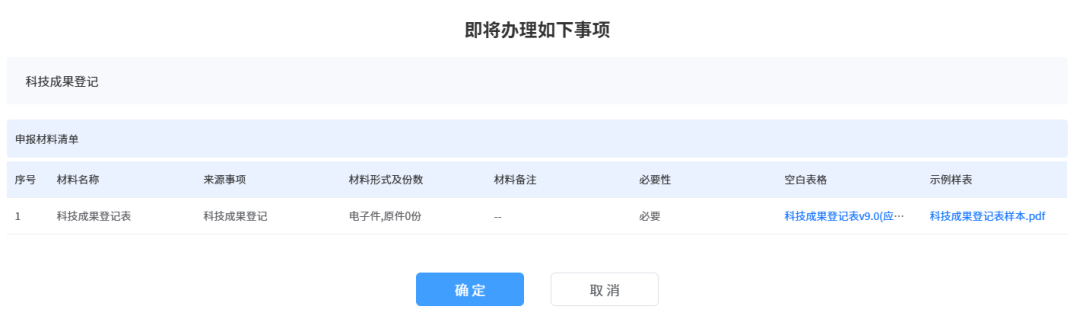 2、阅读“填报须知”内容后根据实际办理需求选择对应的选项,这里以“科技成果登记(应用技术类)”为例,点击“确认”。