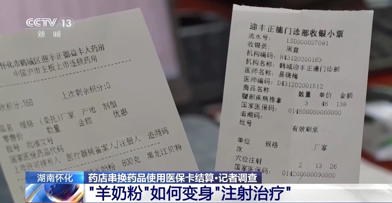 国家医保局检查组工作人员:诊所这边给他开具了诊疗的小票,他拿着诊疗的小票,再回到药店这边,拿奶粉之后直接离开了,并没有做相应的诊疗治疗的项目。